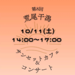 【荒尾干潟】10/11(土)荒尾干潟サンセットカフェ&コンサートin蔵満海岸